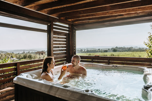 Isola del benessere AD USO ESCLUSIVO di 2 ore con: Jacuzzi idromassaggio esterna nei pressi dell'uliveta e vista panoramica
