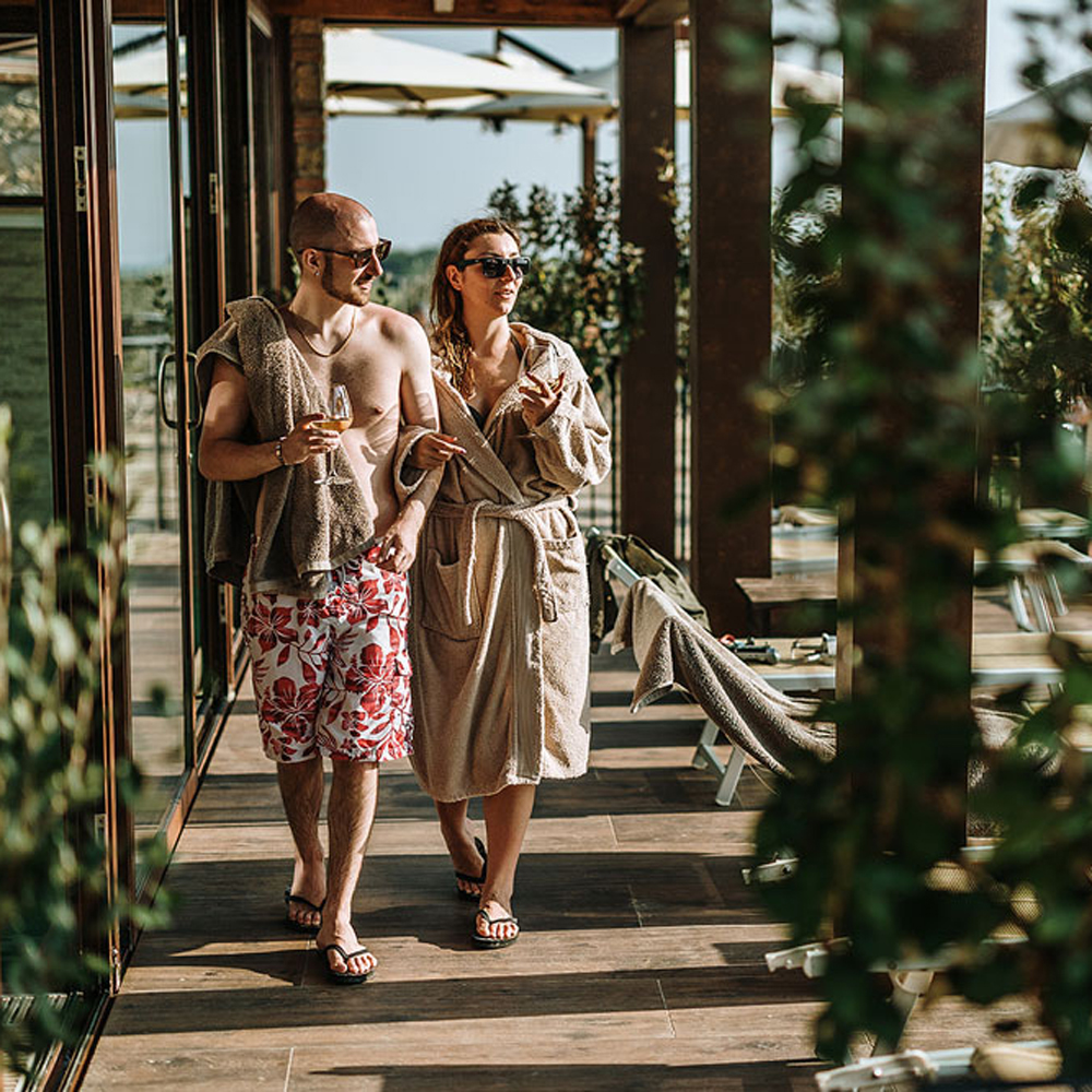 Area Relax AD USO ESCLUSIVO per 2 ore con: piscina riscaldata a sfioro, jacuzzi idromassaggio e vista panoramica su vigneti e uliveti